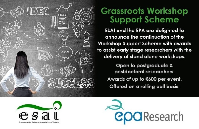 The ESAI, in partnership with the EPA, provides a funding award of €600 to assist postgraduate and postdoctoral researchers organise an event in the broad environmental research area. The ‘Grassroots’ funding helps to enhance dissemination of research, facilitate knowledge exchange and the development and exposure of early career researchers. New collaborations can be formed through the ‘Grassroots’ award process. This type of event (it can also be a workshop) are a key networking tool, and an opportunity for early-stage researchers to increase their profile within and beyond their own field of study.