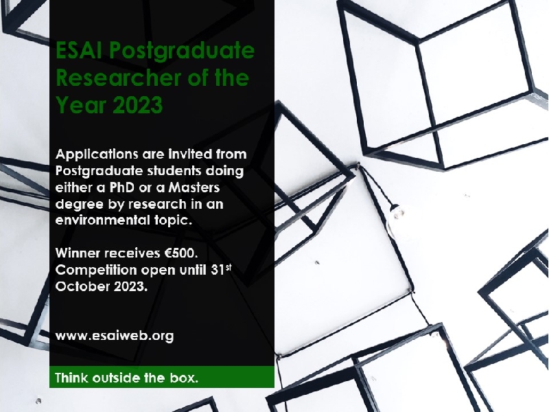 The winner will receive the prize of €500 and their certificate will be presented at the opening ceremony of Environ 2026. They will also be invited to give a guest lecture at the subsequent ESAI AGM which takes place at the ENVIRON 2026.