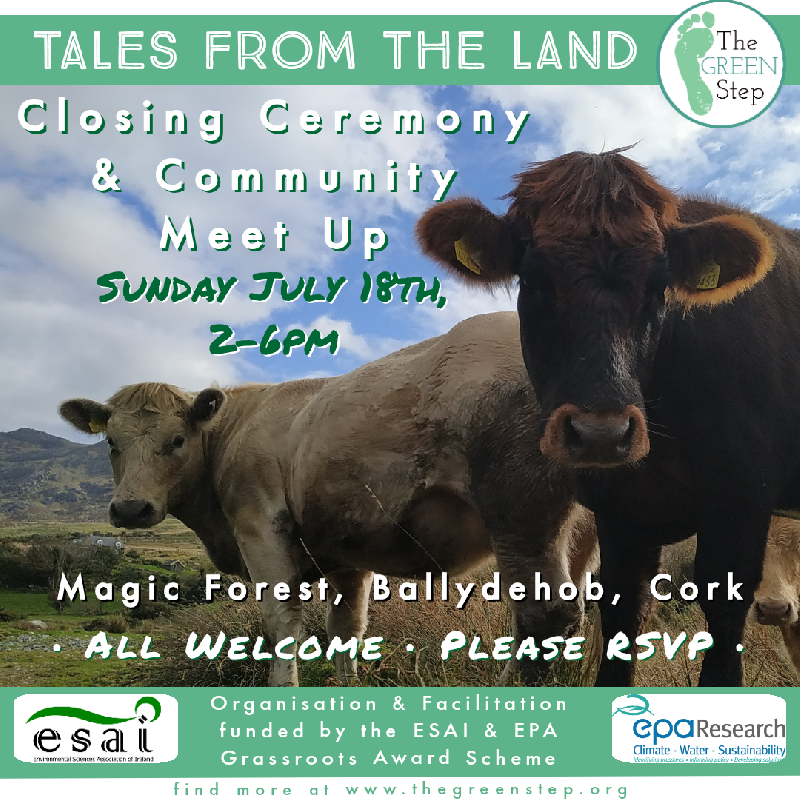 Tales from the Land is a living research inquiry into land use, farming, food production and living well with the land in 21st century Ireland. Over 10 weeks the folks at the Green Step are meeting with a whole range of different contributors in their 10 podcast episodes (launched each Saturday) and live community event on June 4th 7-9pm supported by the ESAI Grassroots Award scheme funded by the EPA. The Green Step are welcoming you to join them for the exploration book here.