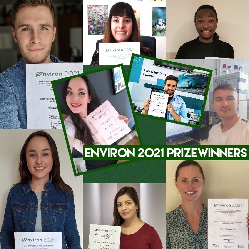 Best Oral Presentation - Molly Ann Williams (DCU), Best Poster Presentation – Adrian Delgado Ollero (DCU), Best Postdoctoral Presentation – Dr Martin Boudou (TU Dublin), Best Environmental Geoscience Presentation – Niamh Faulkner (TCD), Best Wastes and Resources Management – Vaishali Vardhan (UCC), Best Social Engagement Presentation – Alison Hardiman (UCC), Best Ecology Presentation - Elena Zioga (TCD), Best Water Related Presentation – Brigid Hooban (NUI Galway), Best Natural History Presentation – Andrew Neil (TCD), Best Analytical Chemistry Poster – Dylan O’Flynn (DCU), Richard Fitzgerald Memorial Prize for Best Aquatic Environment Poster – Tapiwa Nyakauru (WIT)